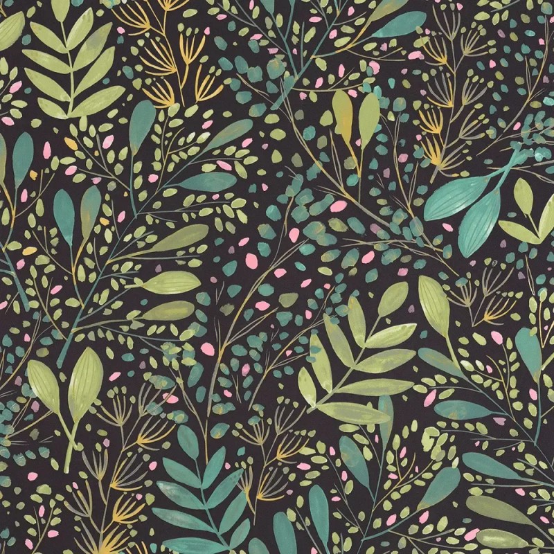 Papel pintado floral negro y verde. Caselio Green Life, papel de pared calidad tejido no tejido lavable. Medidas: 53 cm x 10 metros