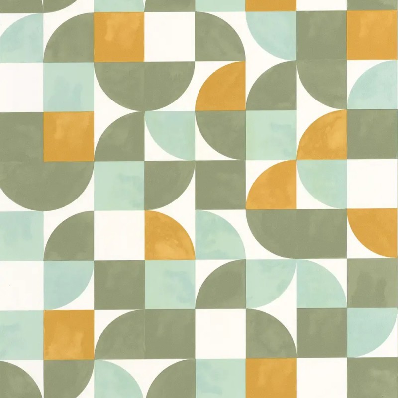 Papel pintado geométrico azul y verde, ideal para cocina. Caselio Green Life, papel de pared calidad tejido no tejido lavable. Medidas: 53 cm x 10 metros