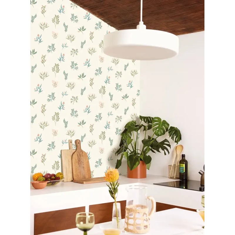 Papel pintado para cocina, herbario botánico. Caselio Green Life, papel de pared calidad tejido no tejido lavable. Medidas: 53 cm x 10 metros