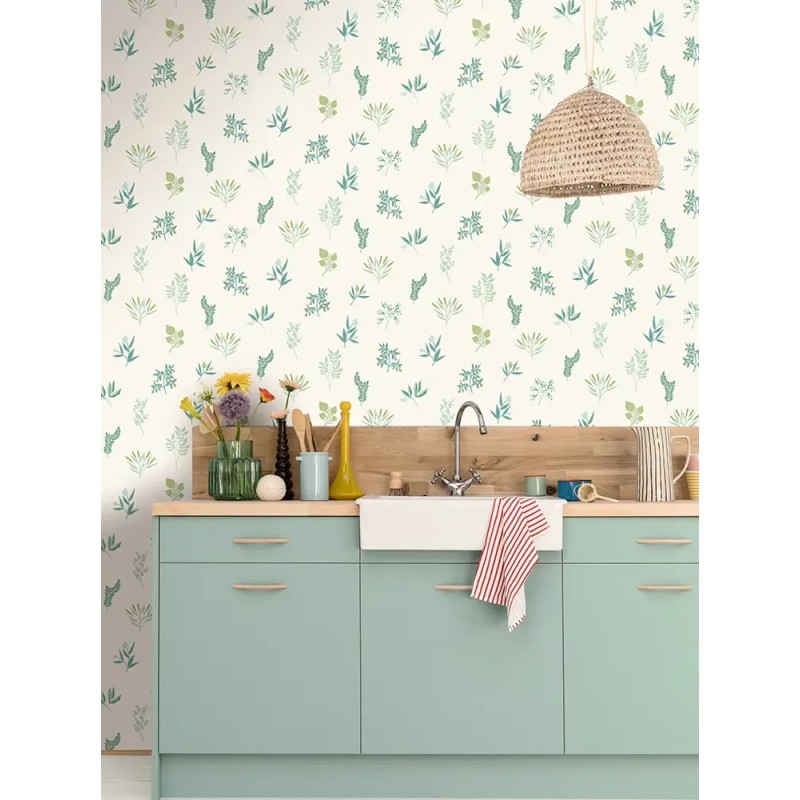 Papel pintado para cocina, herbario de ramilletes. Caselio Green Life, papel de pared calidad tejido no tejido lavable. Medidas: 53 cm x 10 metros
