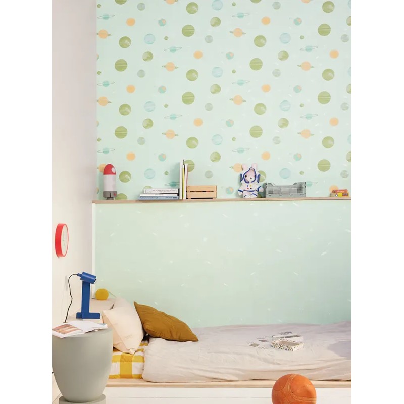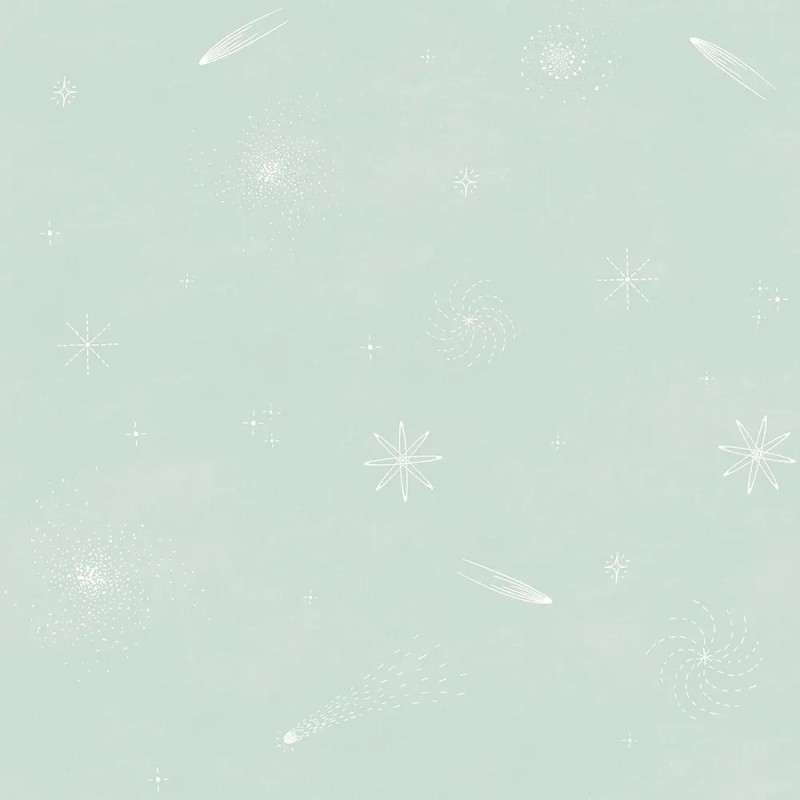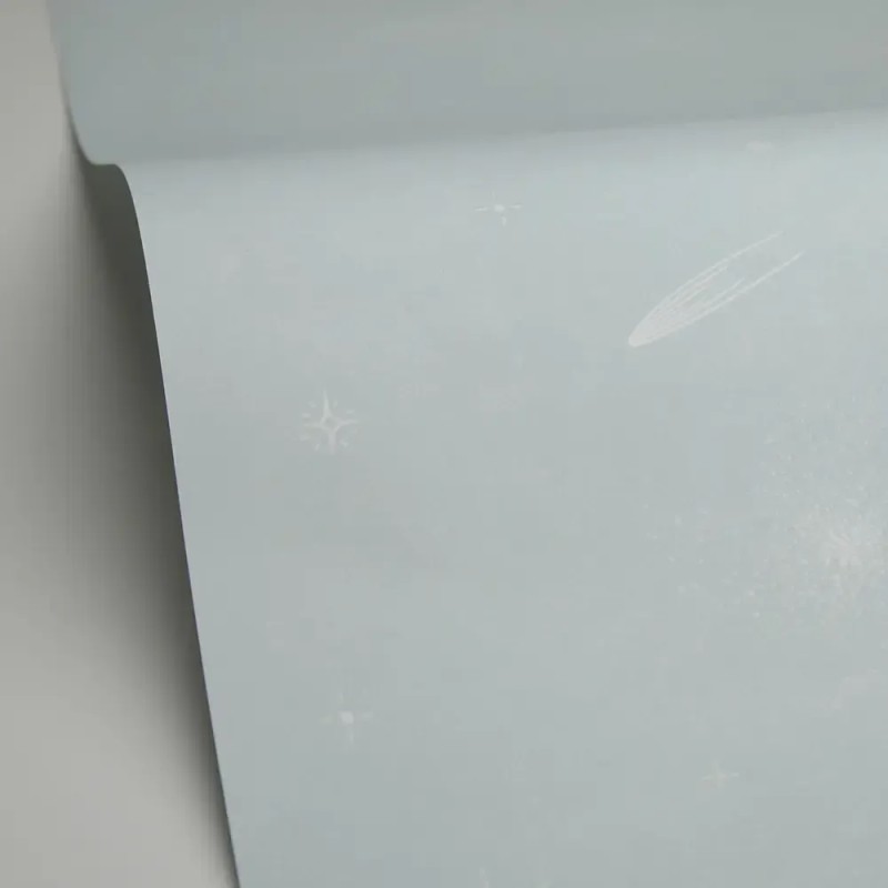 Papel pintado infantil estrellas y cometas azul. Caselio Les Minis Mondes, papel de pared calidad tejido no tejido lavable. Medidas: 53 cm x 10 metros