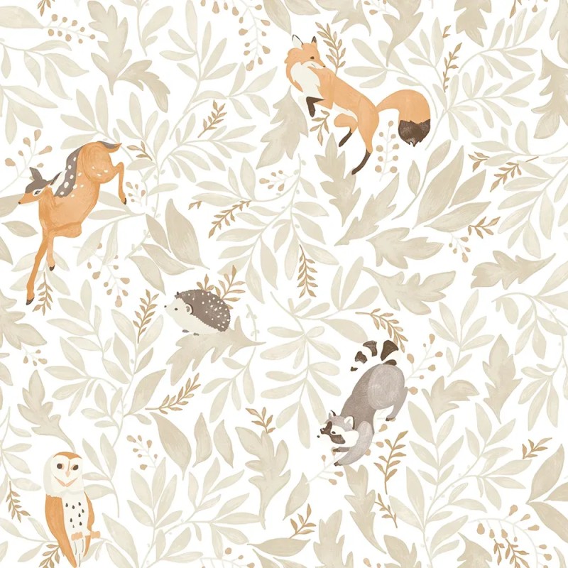 Papel pintado infantil animales del bosque. Caselio Les Minis Mondes, papel de pared calidad tejido no tejido lavable. Medidas: 53 cm x 10 metros