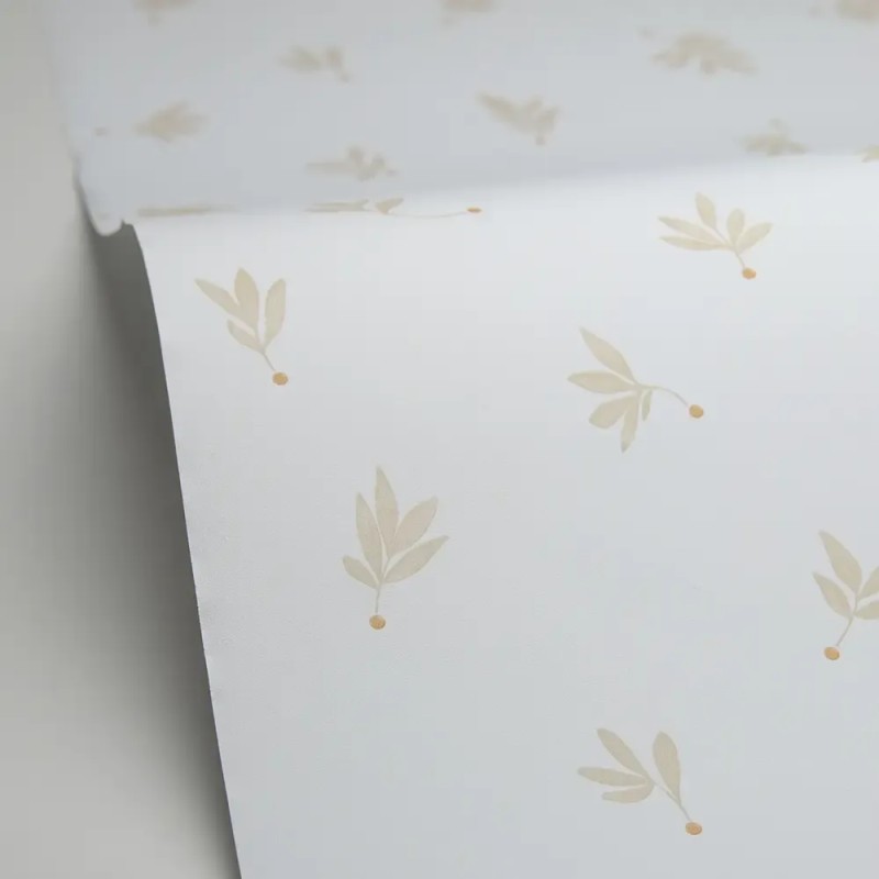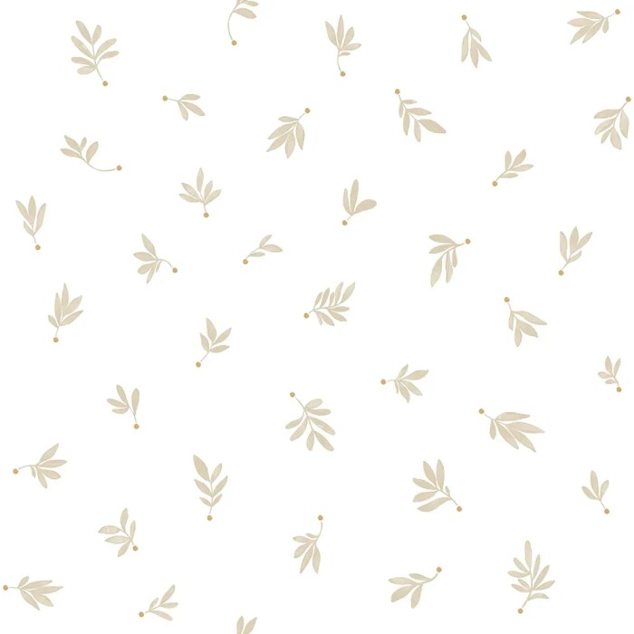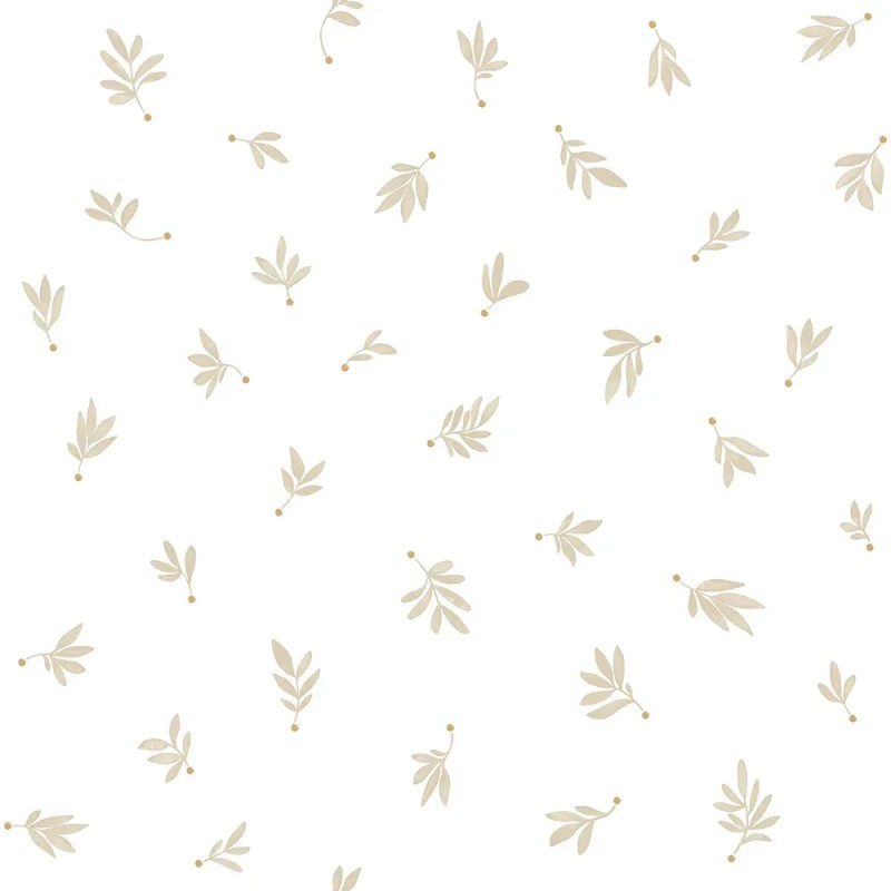 Papel pintado infantil ramas dibujadas verde almendra. Caselio Les Minis Mondes, papel de pared calidad tejido no tejido lavable. Medidas: 53 cm x 10 metros