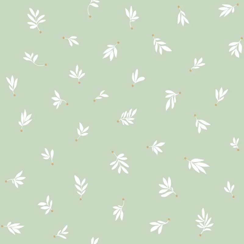 Papel pintado infantil ramas dibujadas verde agua. Caselio Les Minis Mondes, papel de pared calidad tejido no tejido lavable. Medidas: 53 cm x 10 metros