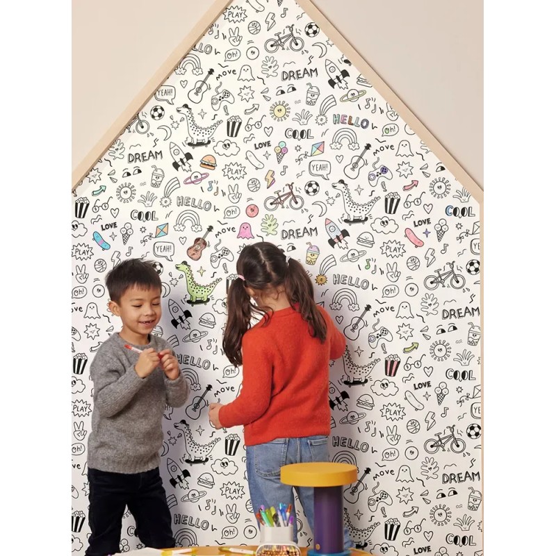 Papel pintado infantil graffiti de niños blanco y negro