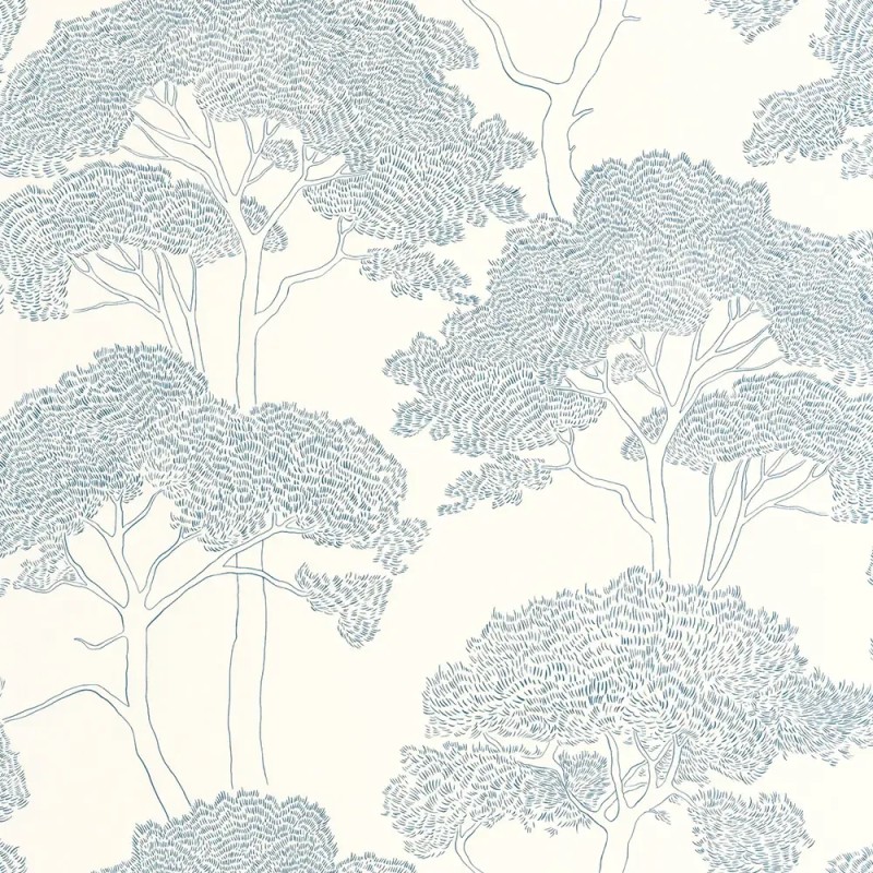 Papel pintado bosque de pinos mediterráneo blanco y verde. Caselio Azur, papel de pared calidad tejido no tejido lavable. Medidas: 53 cm x 10 metros
