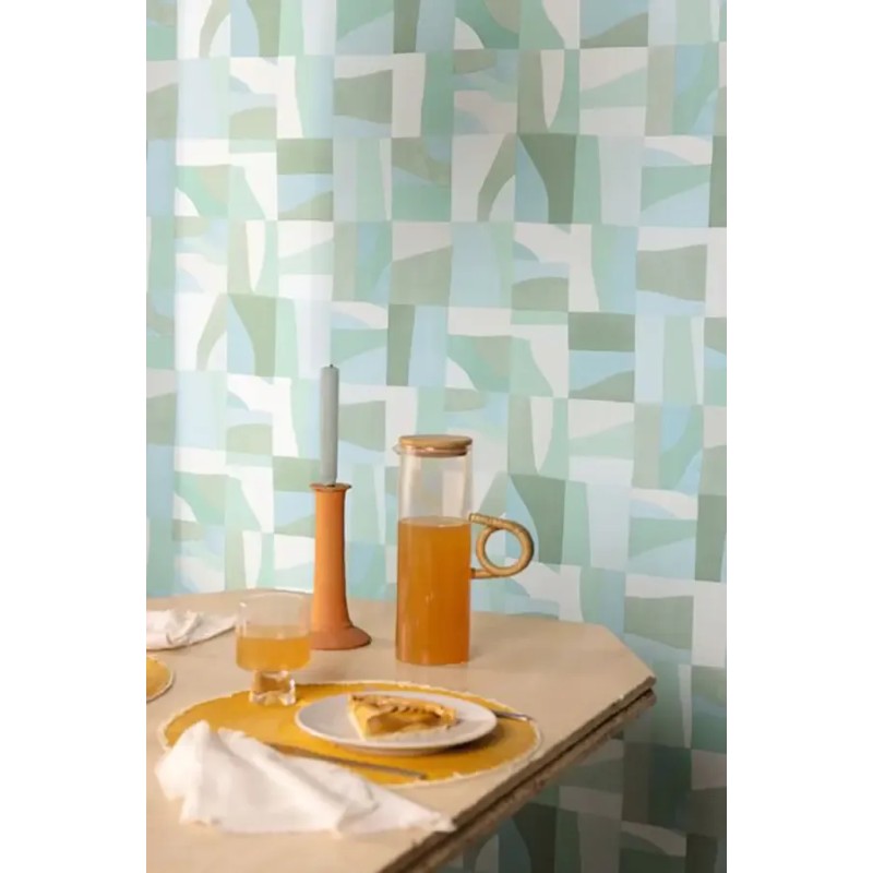 Papel pintado abstracto tonos verdes y turquesa. Caselio Azur, papel de pared calidad tejido no tejido lavable. Medidas: 53 cm x 10 metros