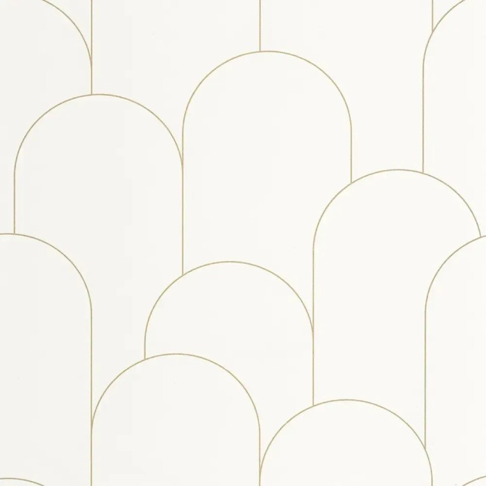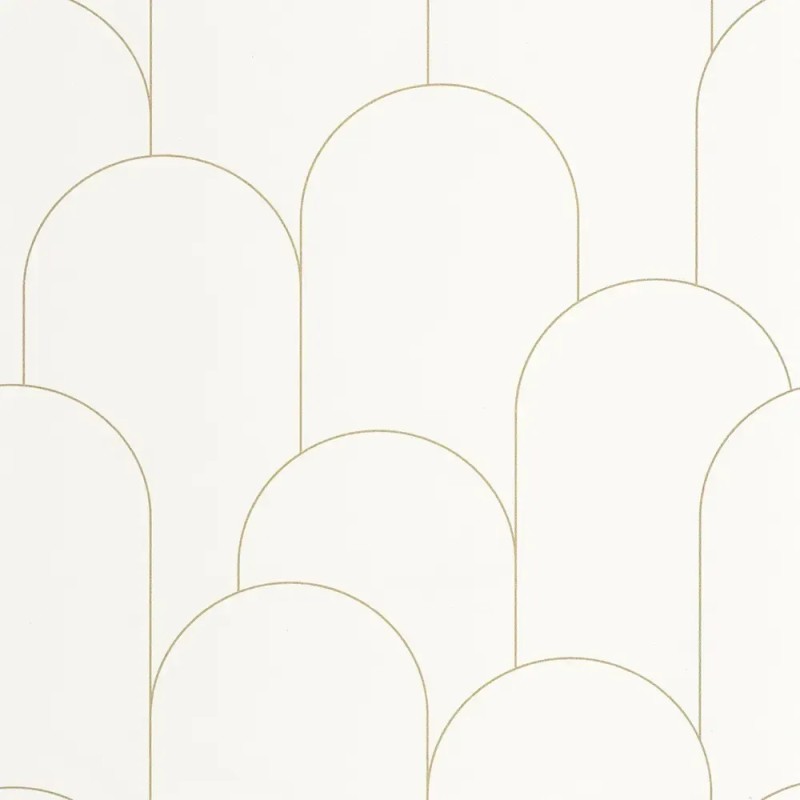 Si la simplicidad tuviera un patrón, sería este. El papel pintado Caselio Ornament Blanc Dore dibuja un arco bellamente detallado con una simple línea dorada para recuperar la esencia del Art Déco.