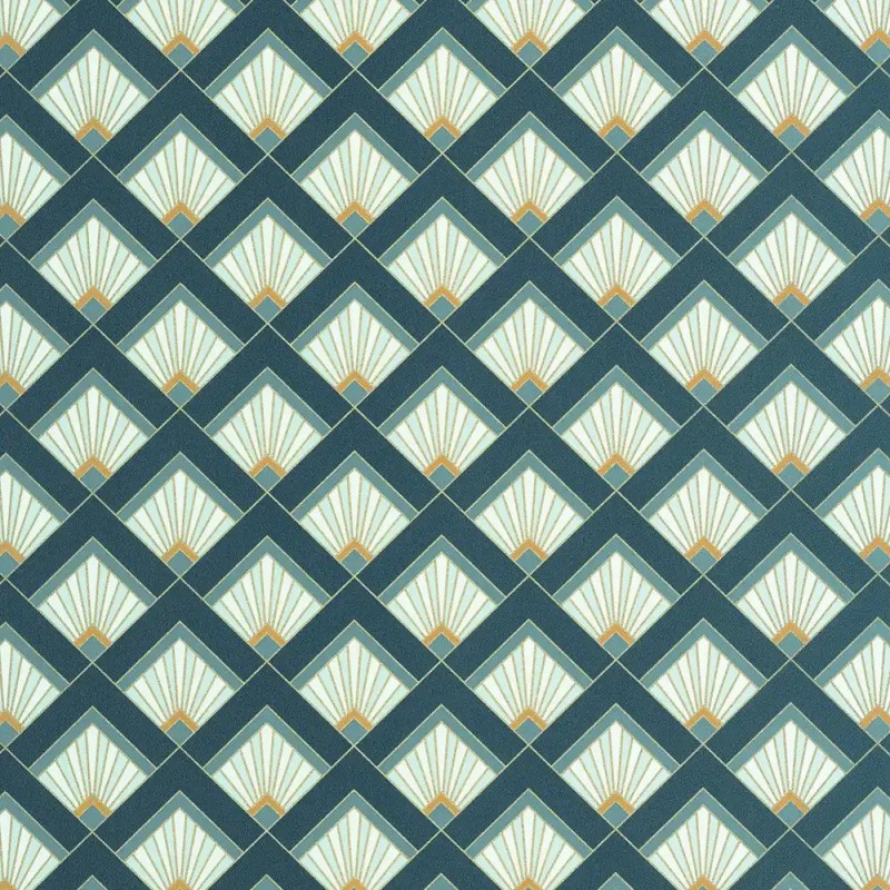 Papel pintado art déco azul, ideal para dormitorio. Caselio Elegance, papel de pared calidad tejido no tejido lavable. Medidas: 53 cm x 10 metros