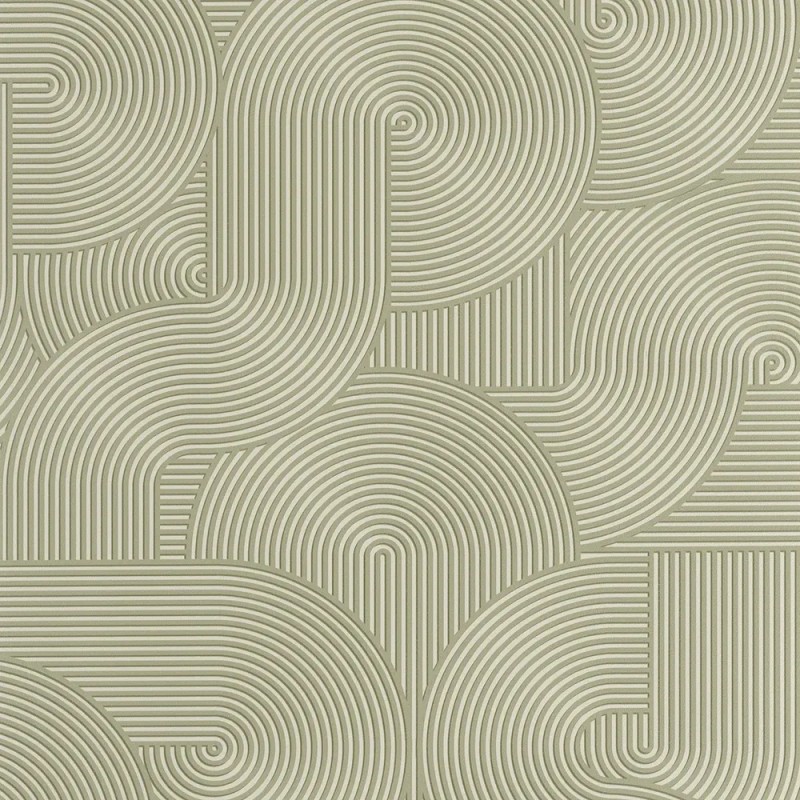 Papel pintado moderno diseño setentero verde. Caselio Graphic, papel de pared calidad tejido no tejido lavable. Medidas: 53 cm x 10 metros