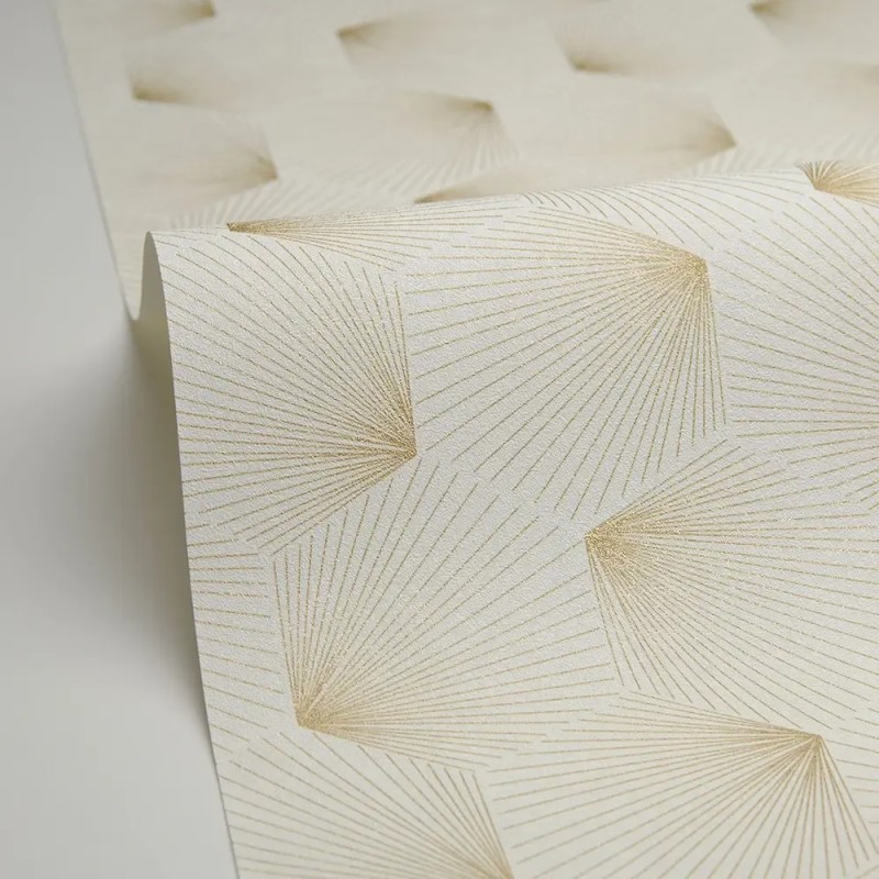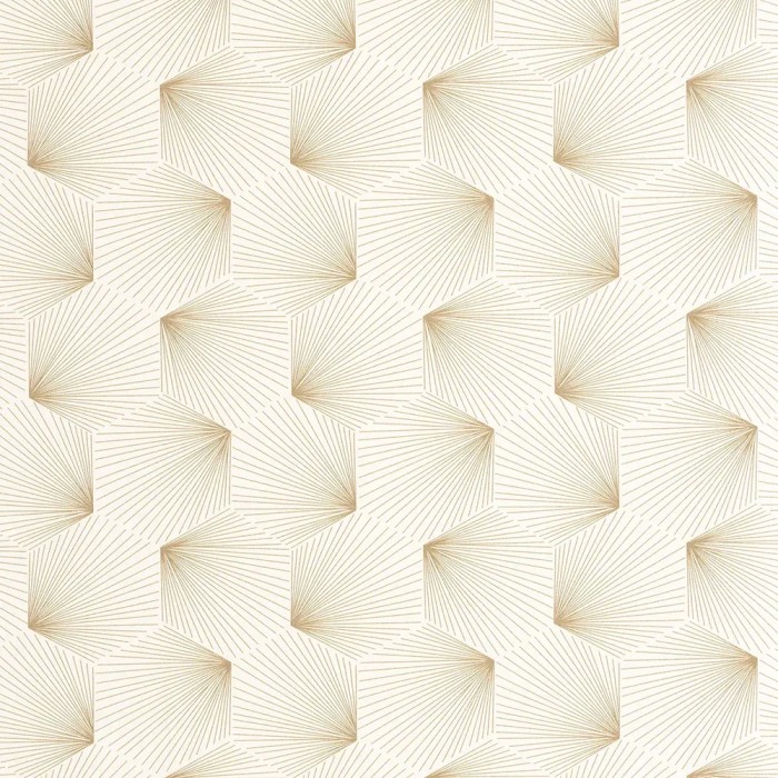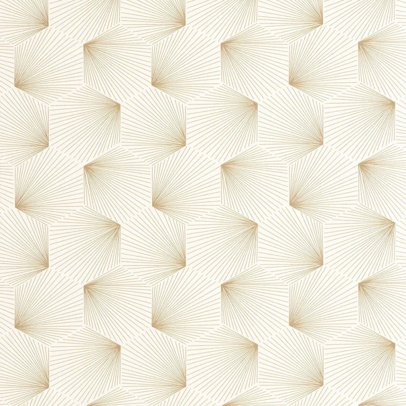 Papel pintado elegante beige y dorado estilo art déco. Caselio Graphic, papel de pared calidad tejido no tejido lavable. Medidas: 53 cm x 10 metros