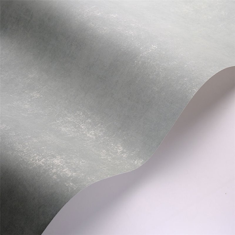 Papel pintado liso efecto pátina verde grisáceo, ideal para salones o dormitorios con estilo sobrio y atemporal.