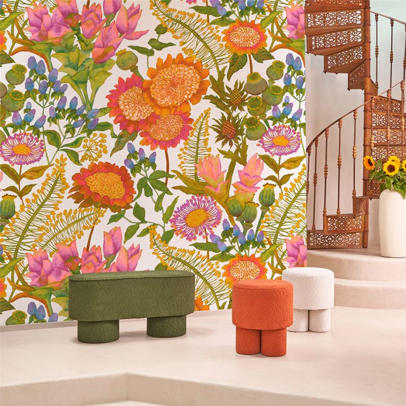 Inspirado en los famosos jardines exóticos, el mural de pared Casadeco Les Baux De Provence Multico es una oda directa a los tejidos provenzales. Sus flores ultra generosas, exóticas y coloridas son lo que hace que este mural panorámico de Casadeco sea tan especial.