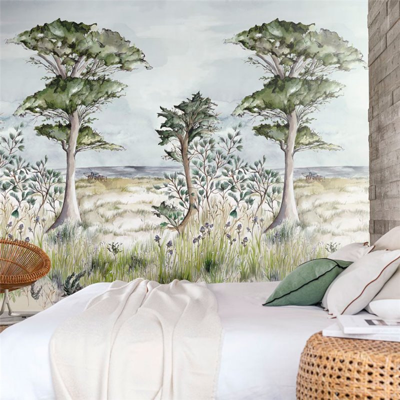Mural pared paisaje costero Atlántico dunas hierbas y pinos