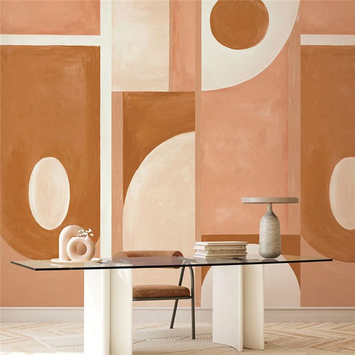 Mural pared pintura abstracta a la cal rosa marrón geométrica