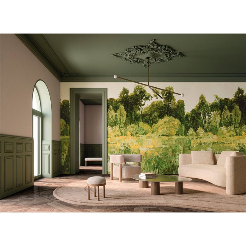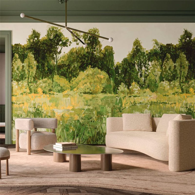 Mural pared paisaje natural bosque al óleo impresionista verde