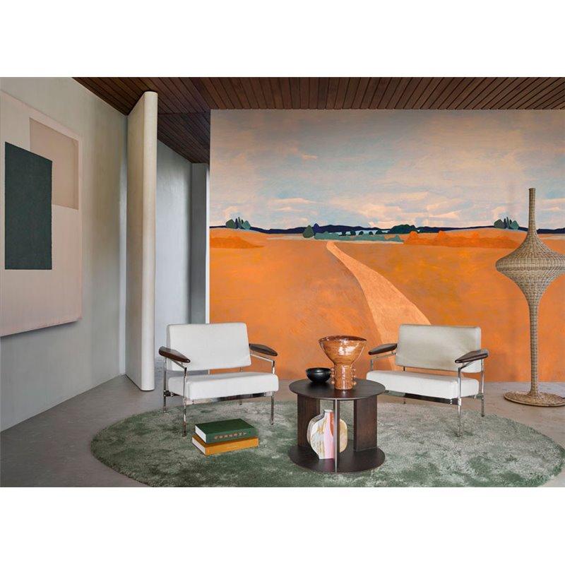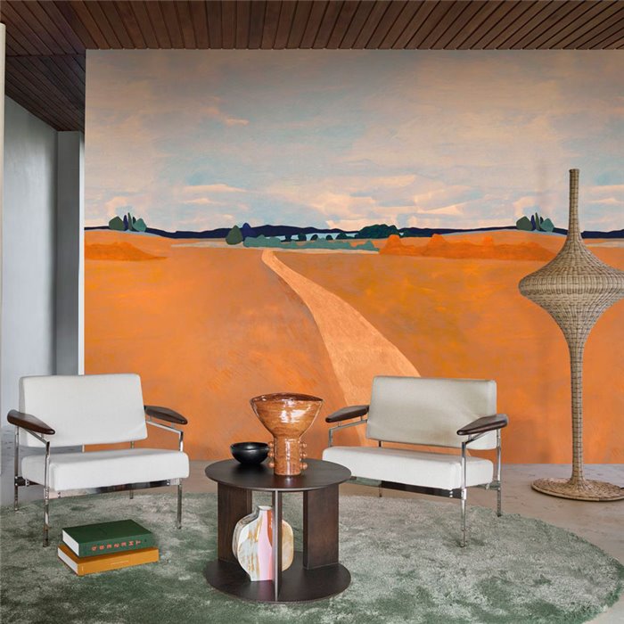 El mural de pared Casamance Moisson Terre De Sienne reproduce una pintura abstracta de un paisaje de campo junto al mar desde una perspectiva minimalista. Una sensación de inmensidad... Los surcos de un campo de trigo invitan a la evasión. El mural panorámico MOISSON de Casamance está disponible en dos versiones, una de día y otra de atardecer. La naturaleza fibrosa del papel da cuerpo al diseño realizado con pasteles al óleo y lápices de colores.