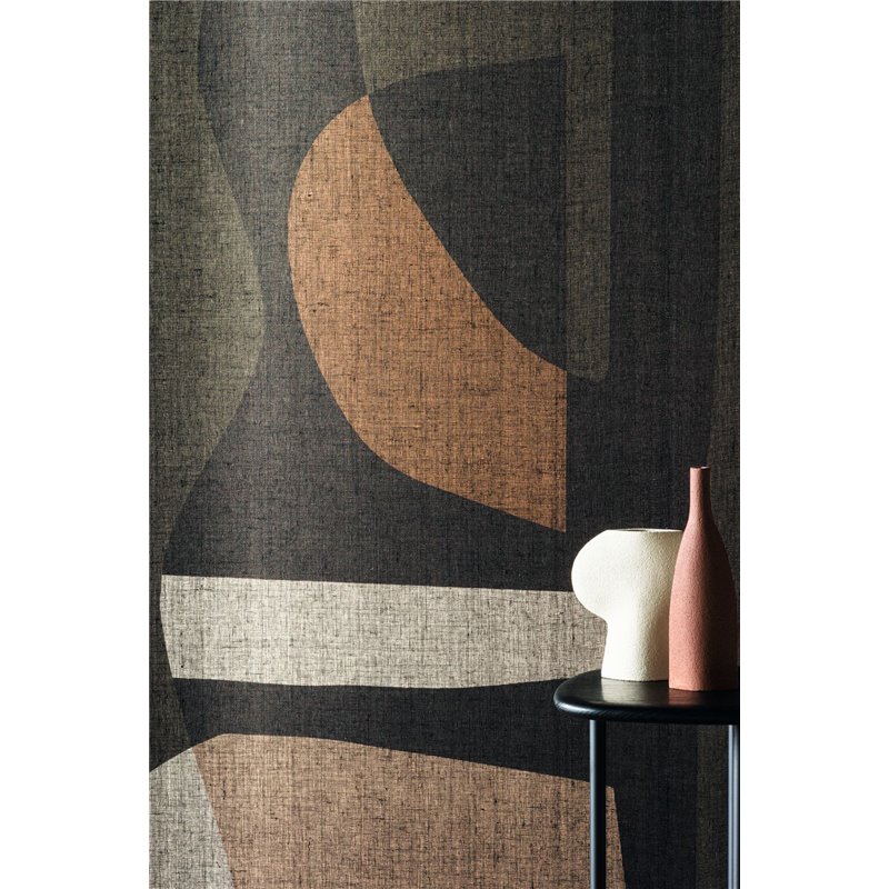 Equilibrio y armonía, el mural de pared Casamance Concordance Noir De Lune / Kaki expresa las formas orgánicas con sus líneas suaves se unen con formas similares creando simetrías sorprendentes. Esta composición geométrica a gran escala está cubierta por una gasa de lino ligera y delicada, para subrayar la naturaleza aireada de la estructura. El mural de pared CONCORDANCE de Casamance se vende por paneles que puedes unir uno tras otro adaptándose a las medidas de tus paredes. Disponible en dos versiones: una revestida con una lona de lino negro y otra con una lona de color natural.