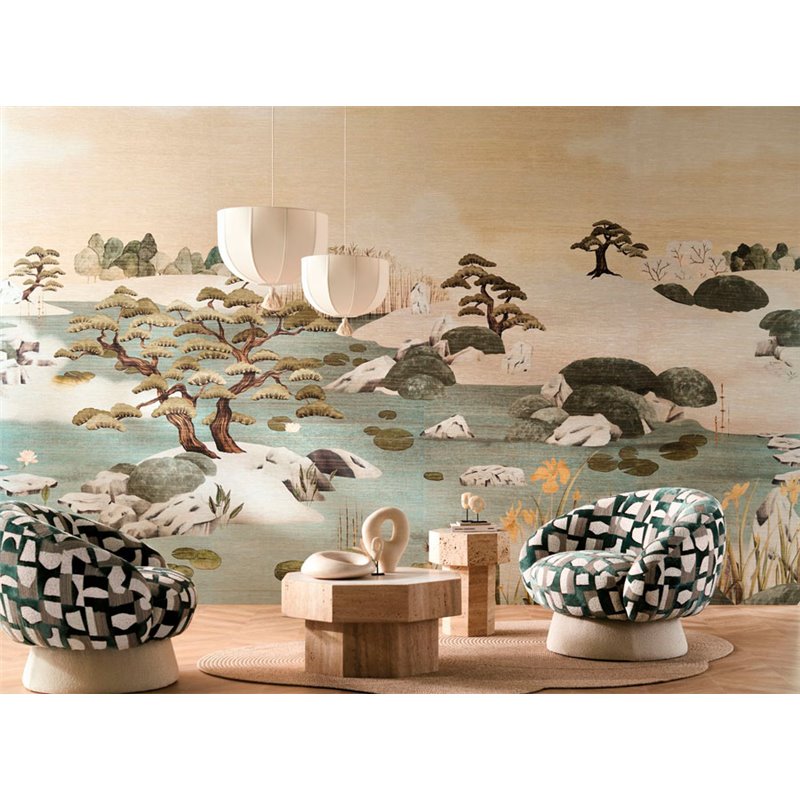 El mural de pared Casamance Adachi Sable Opaline es una belleza cambiante, la de un jardín japonés cuyo aspecto cambia con las horas, los días, las estaciones, y se torna iridiscente bajo los rayos del sol. El mural panorámico ADACHI de Casamance está hecho sobre la base que evoca la delicadeza de la seda, fijada a una lámina metálica. Disponible en dos colores: bronce marino, arena opalina.