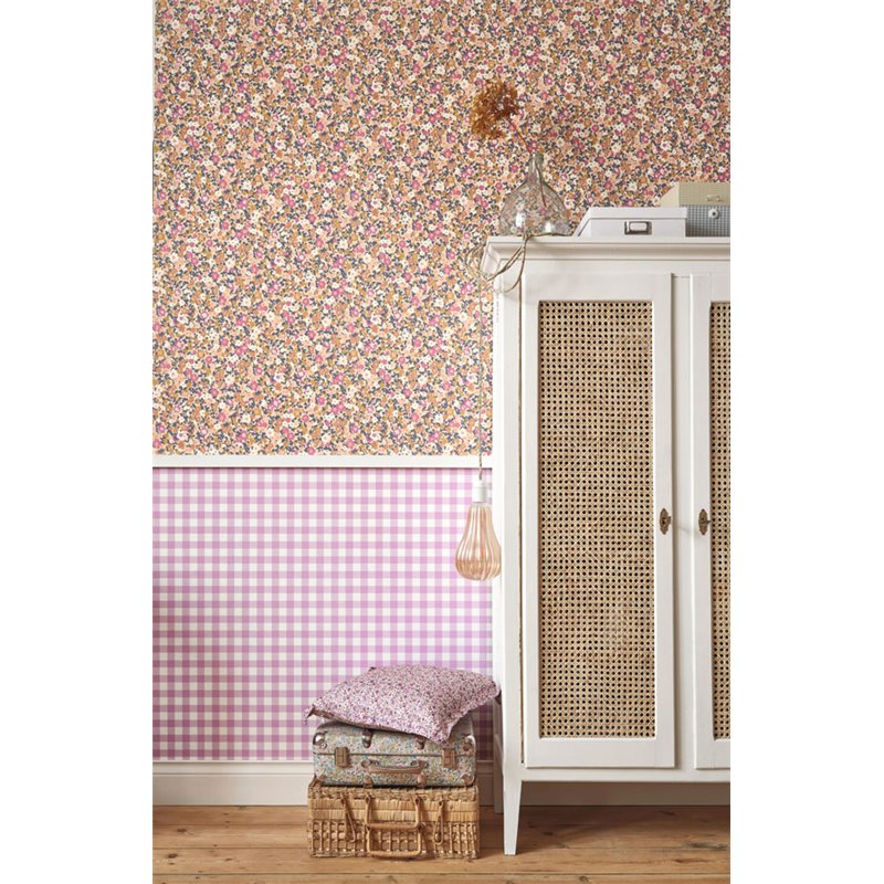 Pétalos exuberantes, tallos esbeltos y un follaje ligero, el papel pintado Casadeco Pansy Lilas / Beige Rosé reune los ingredientes de un tejido Liberty en un precioso estampado de florecillas. Pansy de Casadeco se presenta como un patrón floral fresco con los colores alegres de un prado de flores primaveral.