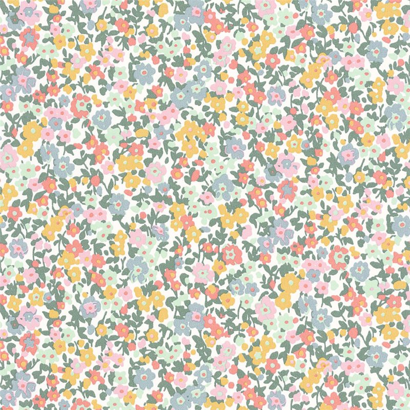 Papel pintado flores pequeñas, estampado liberty multicolor, una opción serena y elegante para crear espacios acogedores.