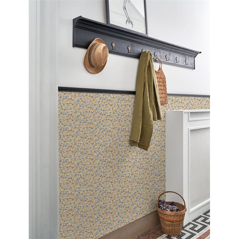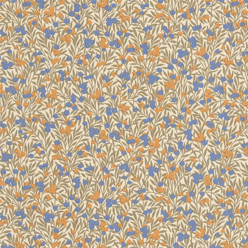 El papel pintado Casadeco Cherry Naturel / Bleu tiene a los arándanos o las grosellas rojas como patrón floral protagonista donde se suceden deliciosamente. Detrás de escena, el follaje de Cherry de Casadeco está inspirado en los diseños del movimiento Arts and Crafts.