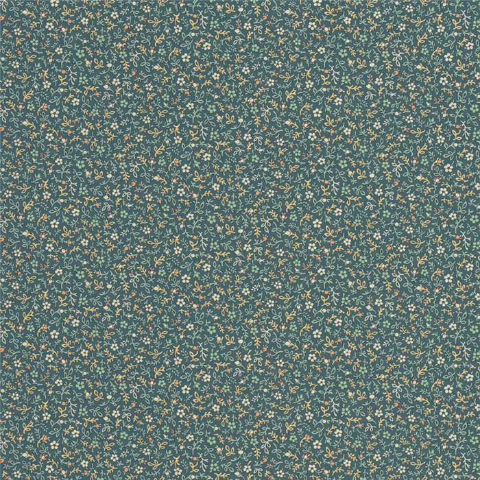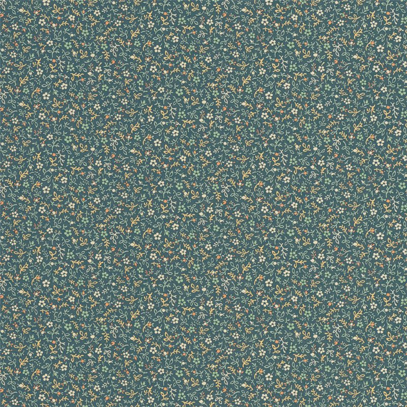 Papel pintado flores pequeñas azules, ideal para salones, pasillos o dormitorios de estilo rústico moderno.