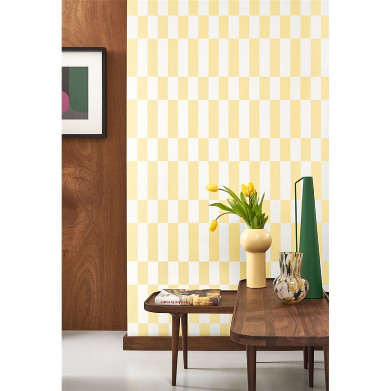 Papel pintado estilo retro tipo tablero de ajedrez blanco, una propuesta con carácter artístico para interiores contemporáneos.