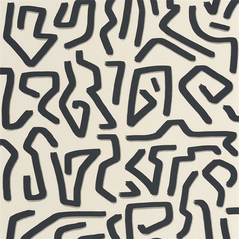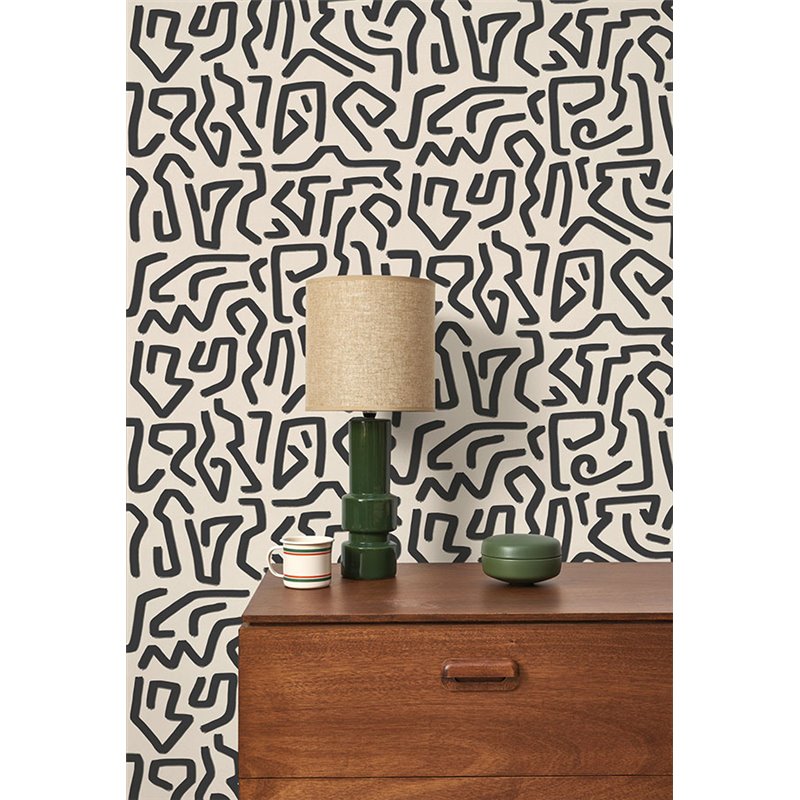 Papel pintado arte moderno estilo laberinto de keith haring, aportando dinamismo visual a paredes de salones, estudios o recibidores.