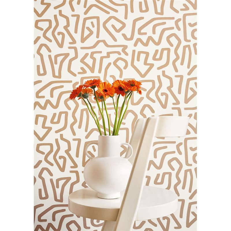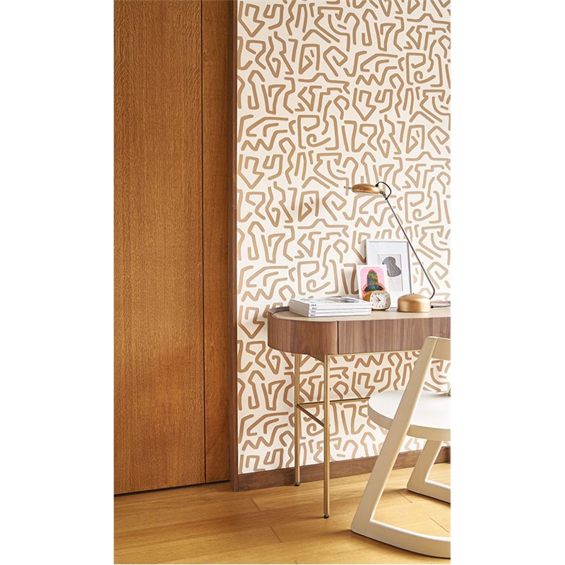 Papel pintado arte moderno estilo laberinto de keith haring, aportando dinamismo visual a paredes de salones, estudios o recibidores.