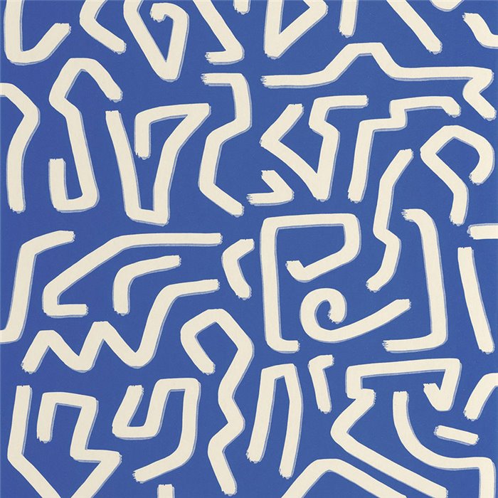 Papel pintado arte moderno estilo laberinto de keith haring, aportando dinamismo visual a paredes de salones, estudios o recibidores.