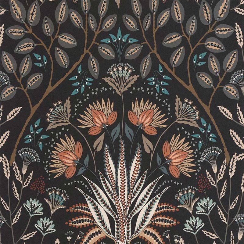 Papel pintado estampado floral estilo ingles tonos verdes, aportando dinamismo visual a paredes de salones, estudios o recibidores.