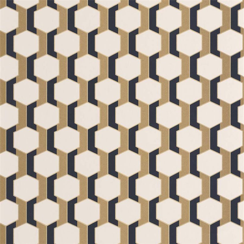 Papel pintado diseño de panal 3D con un toque refinado dorado