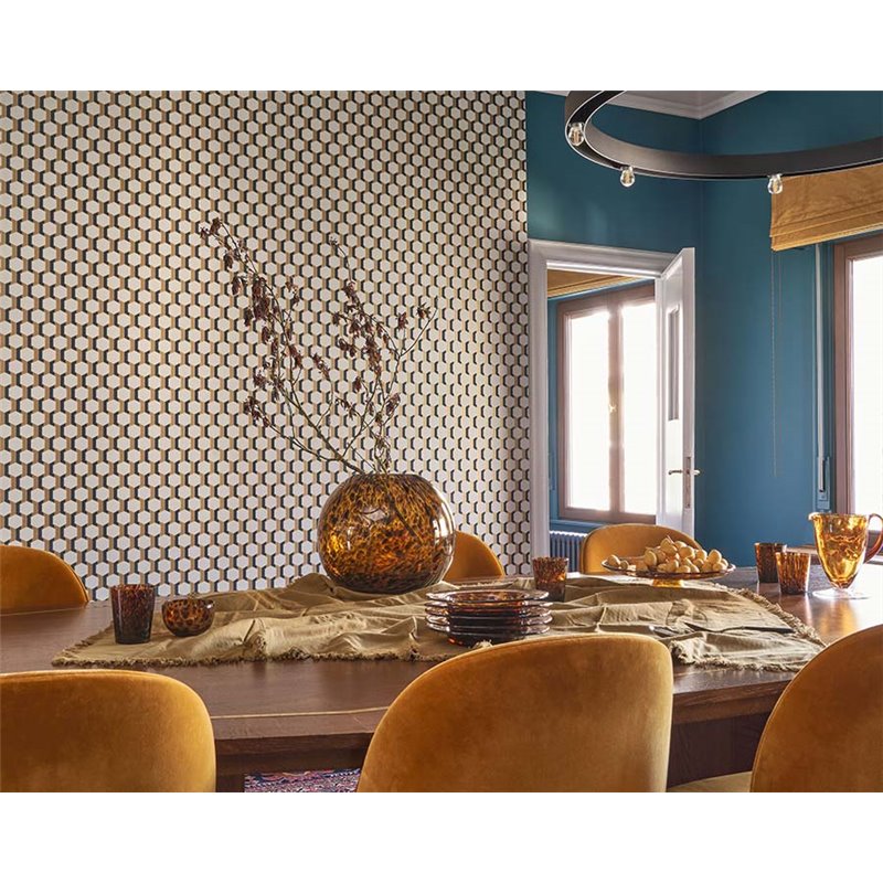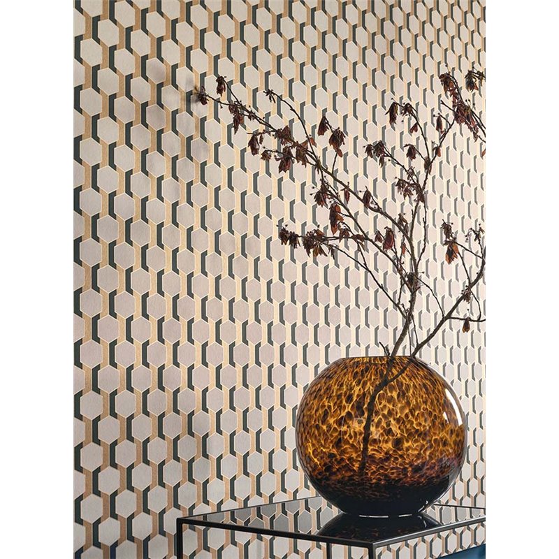 Gráfico y barroco, el papel pintado Casadeco Hamilton Mordore y su diseño geométrico en forma de panal, resalta la estética de la pared con una precisión encantadora. HAMILTON de Casadeco también le dará a tus interiores un toque de refinamiento inesperado.