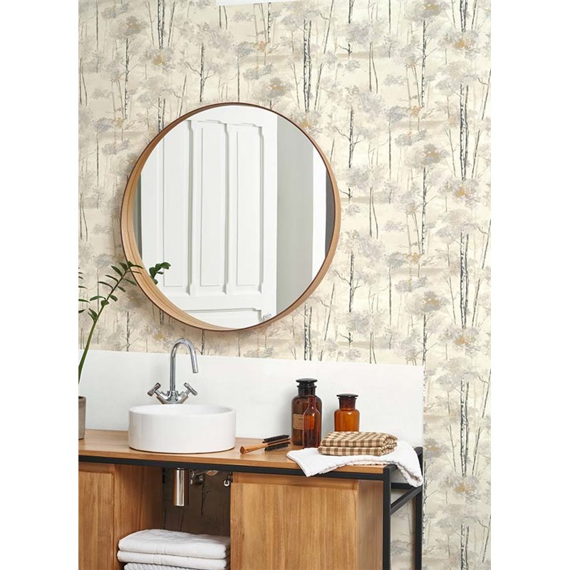 El papel pintado Casadeco Skandinavia Blanc Neige tiene un aire paisajístico, un bosque de troncos altos y rectos del abedul con un precioso acabado entre caligráfico y pintura al óleo. El papel pintado Skandinavia de Casadeco salpica tus paredes con el follaje de un paisaje nórdico.