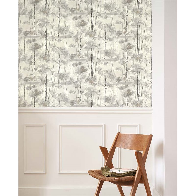 Papel pintado floral estilo nórdico con árboles al óleo gris, una elección moderna que combina arte y diseño con sutileza.
