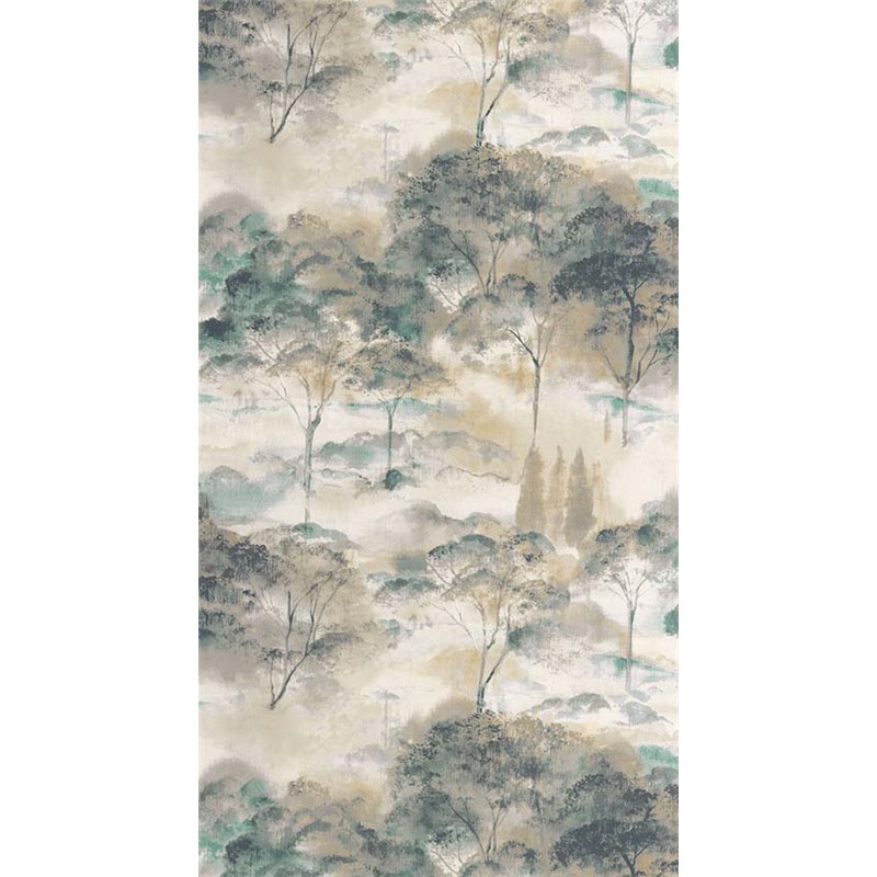Papel pintado paisaje abstracto de bosque verde, ideal para dar un aire creativo y expresivo a cualquier estancia.