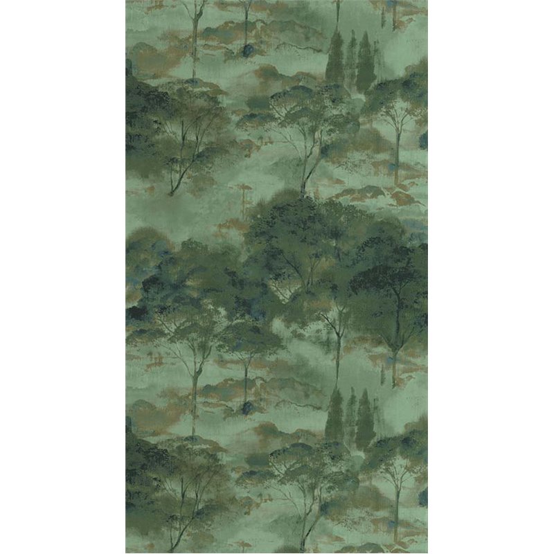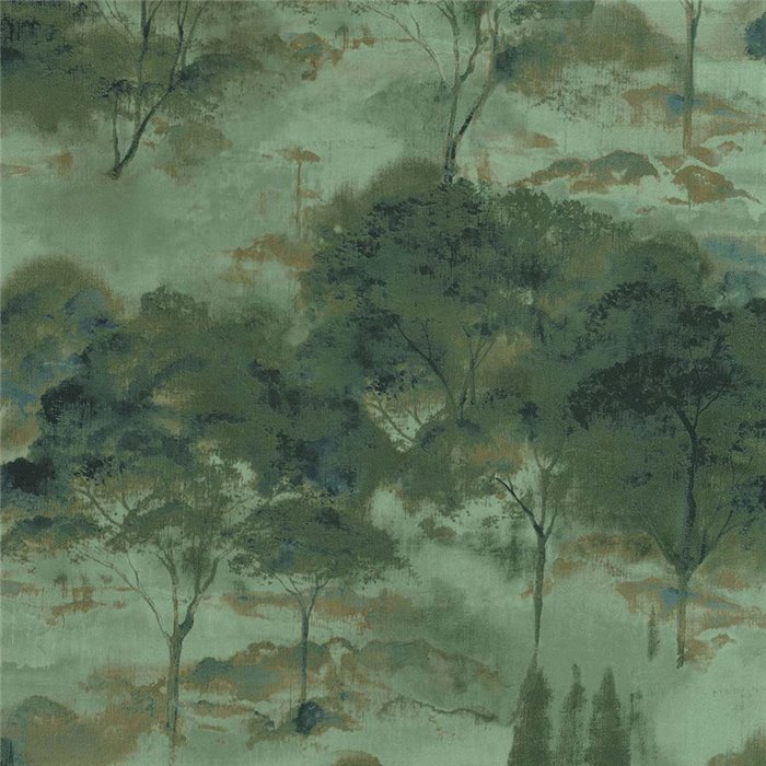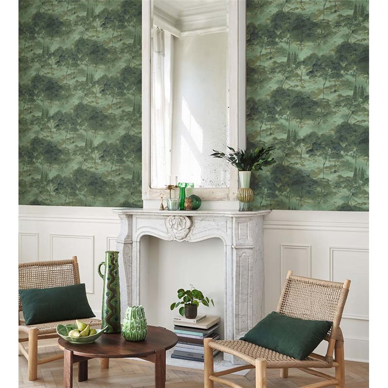 Papel pintado paisaje de bosque abstracto ideal para salón o comedor, una propuesta con carácter artístico para interiores contemporáneos.
