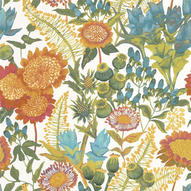 Papier peint tournesols et autres fleurs sauvages en couleurs vives multicolores, idéal pour apporter du caractère aux murs avec discrétion.
