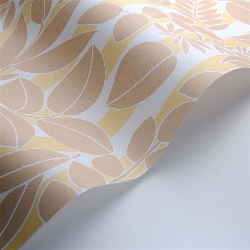 Papel pintado floral estilo mediterráneo tonos naranja, aportando dinamismo visual a paredes de salones, estudios o recibidores.
