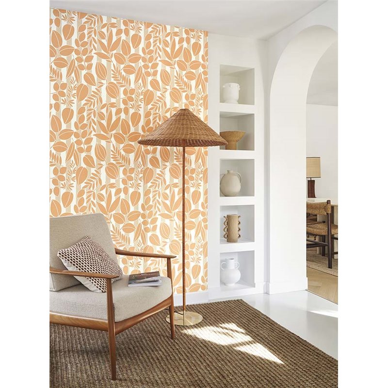 Papel pintado flores amarillas con rayas verdes de la rivera francesa, perfecto para espacios que buscan personalidad sin excesos.