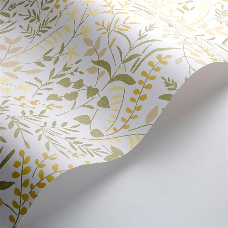 Papel pintado estampado de flores verdes para salón estio mediterráneo