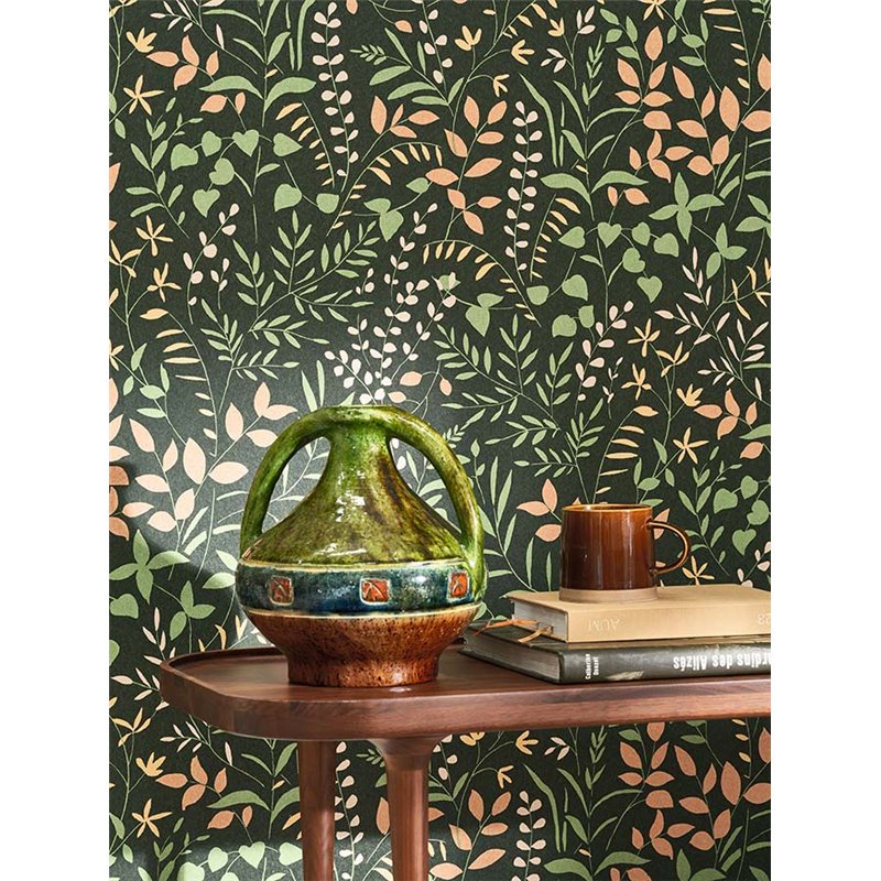 Papel pintado flores de campo o silvestres estilo mediterráneo, aportando dinamismo visual a paredes de salones, estudios o recibidores.