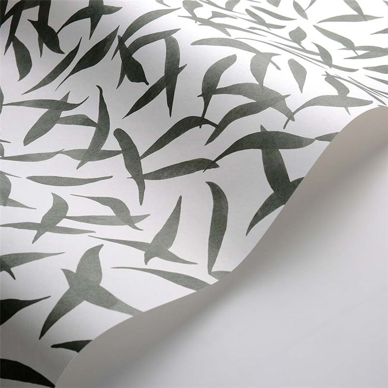 Papel pintado floral efecto acurela, hojas de olivo blanco y verde, perfecto para espacios que buscan personalidad sin excesos.