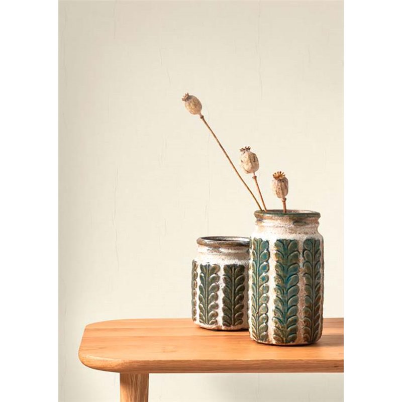 Papel pintado vinílico efecto textil beige claro o color vainilla, perfecto para espacios que buscan personalidad sin excesos.