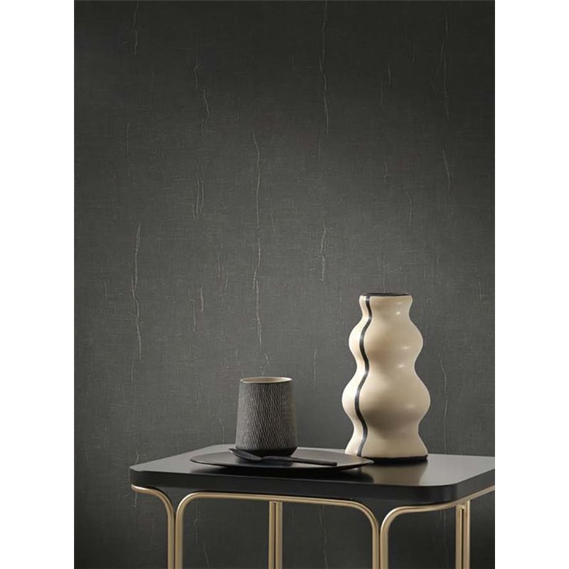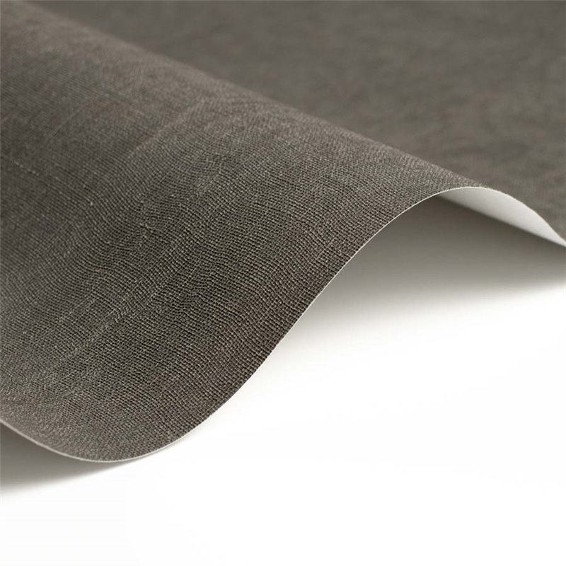 Papel pintado liso gris antracita efecto tela de muselina, aportando dinamismo visual a paredes de salones, estudios o recibidores.