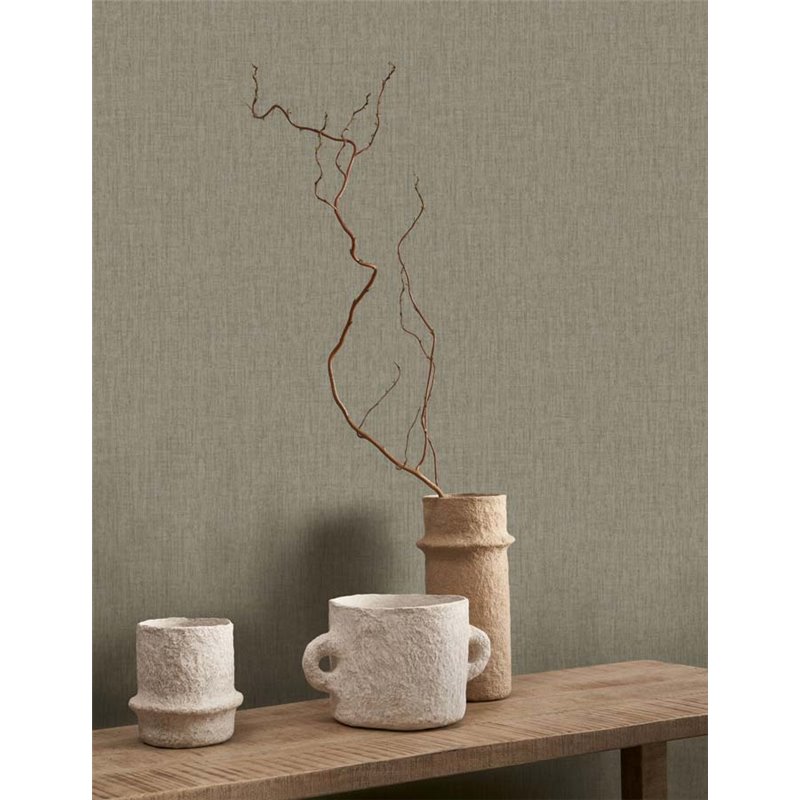 Papel pintado efecto fibras vegetales gris, perfecto para espacios que buscan personalidad sin excesos.