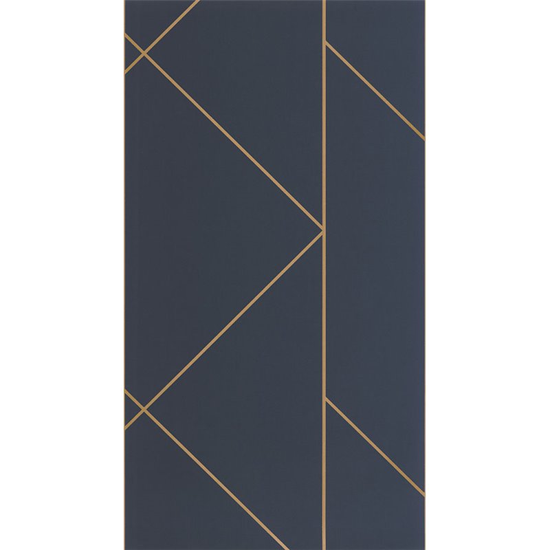 Papel pintado moderno azul con diseño geométrico dorado metalizado