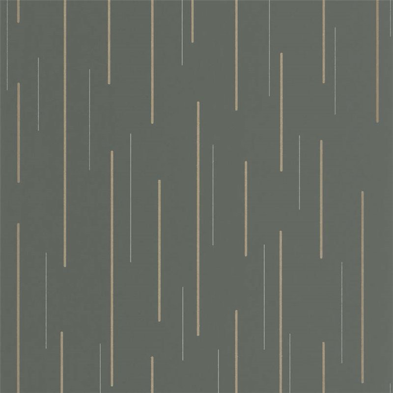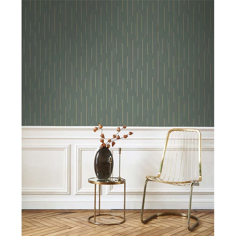 Papel pintado estilo moderno negro con rayas brillantes en oro, perfecto para espacios que buscan personalidad sin excesos.