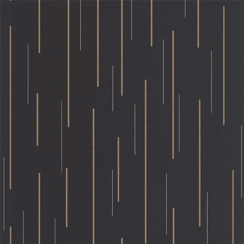 Modern black wallpaper with bright gold stripes, a modern wallpaper that blends art and design with subtlety.